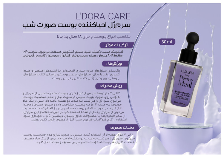 شبها پوستت خسته و کدره؟ با سرم ژل شب لدورا، سلولهای مرده رو پاک کن و صبح با پوستی نرم، شفاف و جوان بیدار شو! 💛