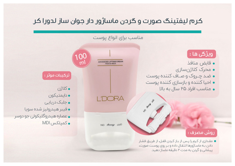 کرم لیفتینگ صورت و گردن ماساژور دار جوان ساز لدورا کر 100 میلی لیتر