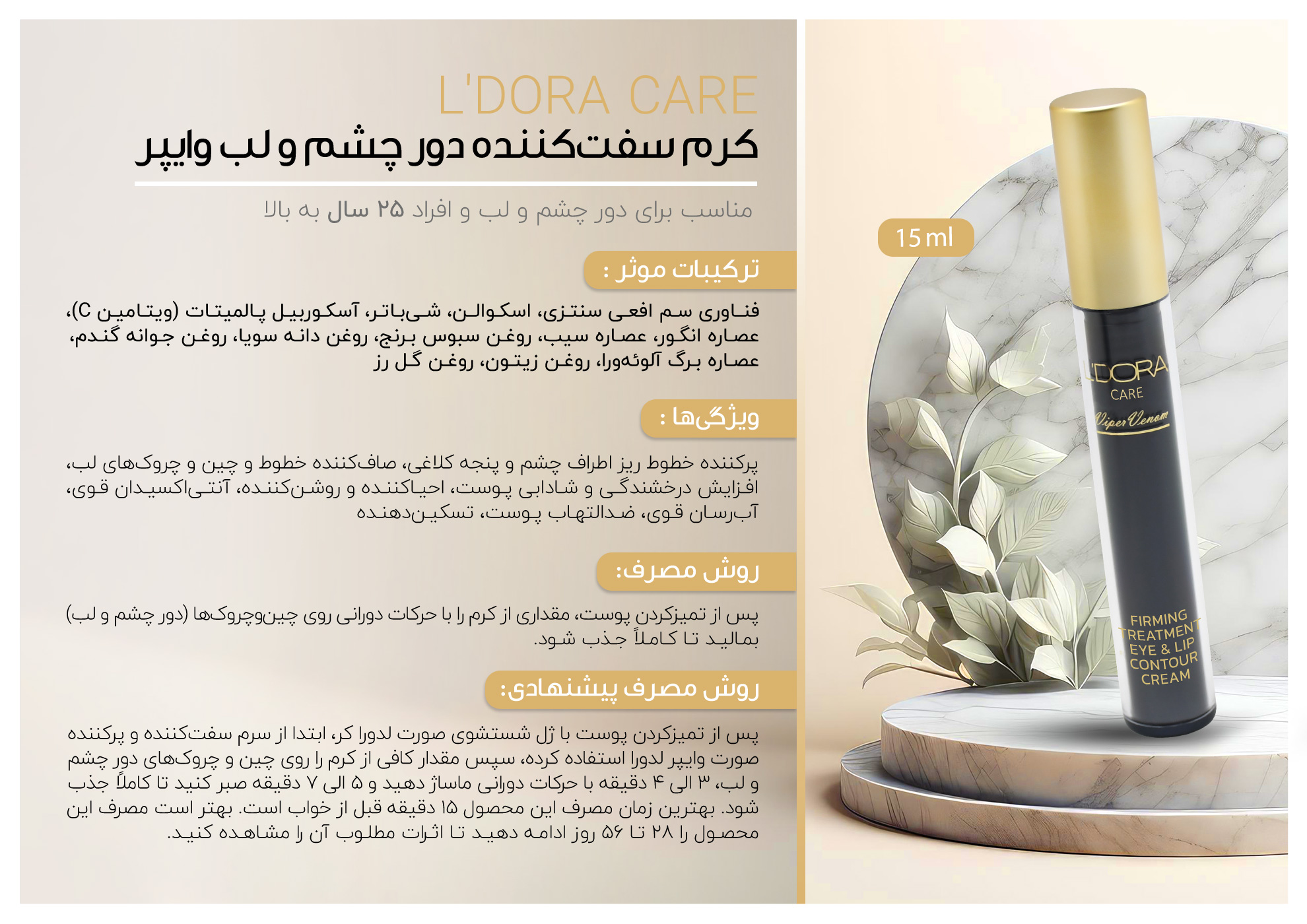 ✨ کرم سفتکننده دور چشم و لب وایپر لدورا